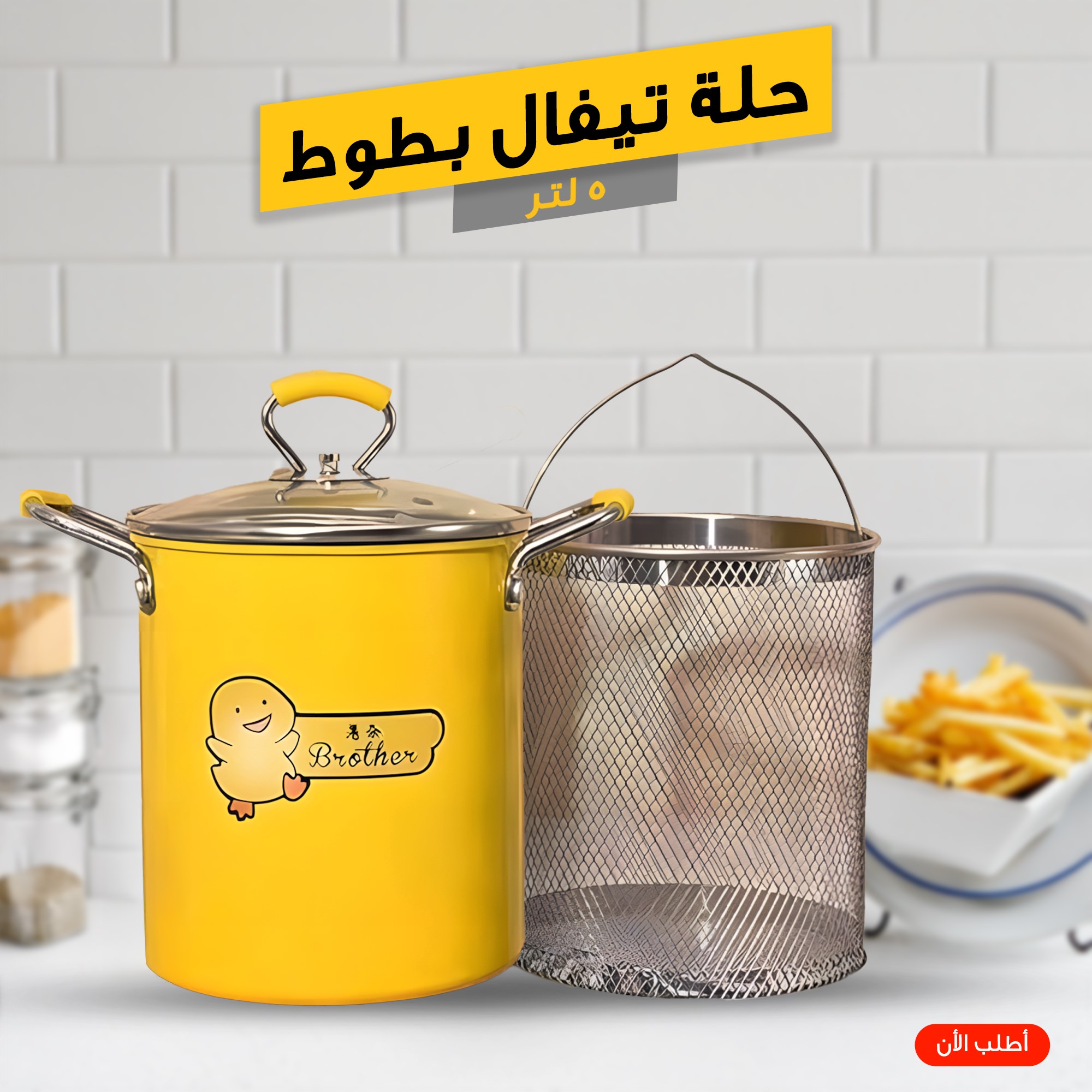 حلة القلي «بطوط» سعة 5 لتر بسلة ستانلس لتصفية الزيت وطبقة مانعة للالتصاق—قلي أسهل، نتايج أحلى، وتنضيف في ثواني.